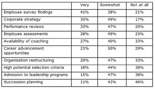 Companies most guarded about succession plans, often failing to communicate about training and leadership programs.